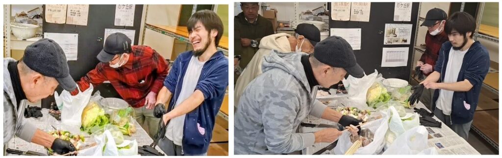 野菜の下ごしらえでは、自然と多くの方が集まり、声を掛け合いながら作業。準備の時間からすでに、終